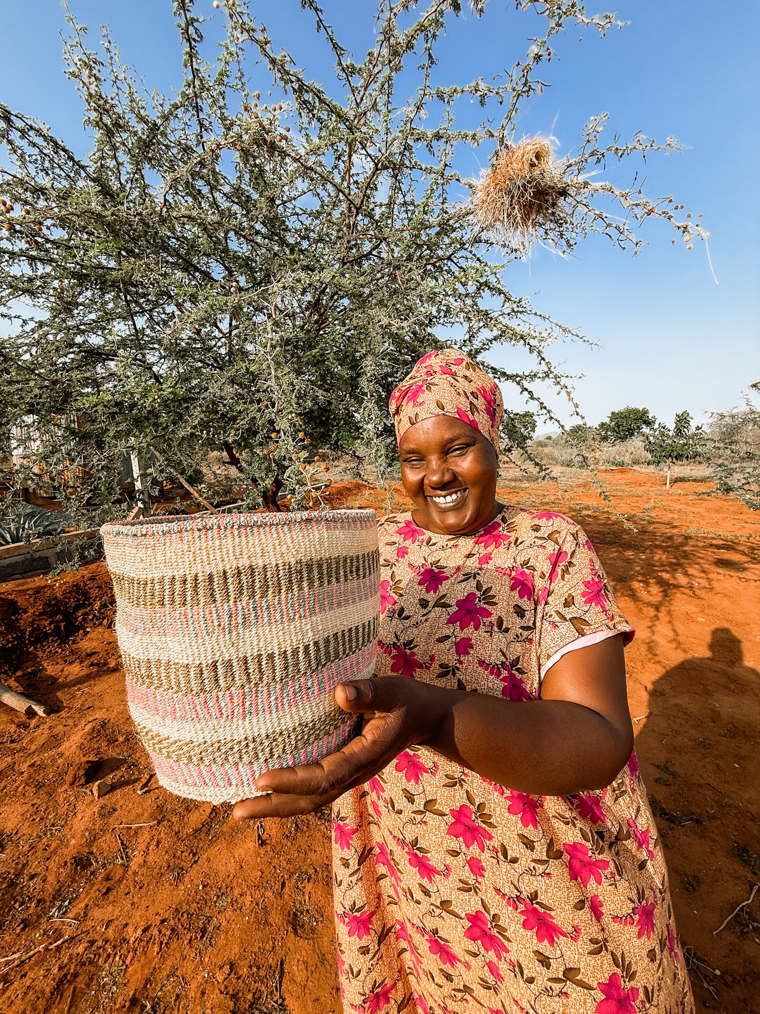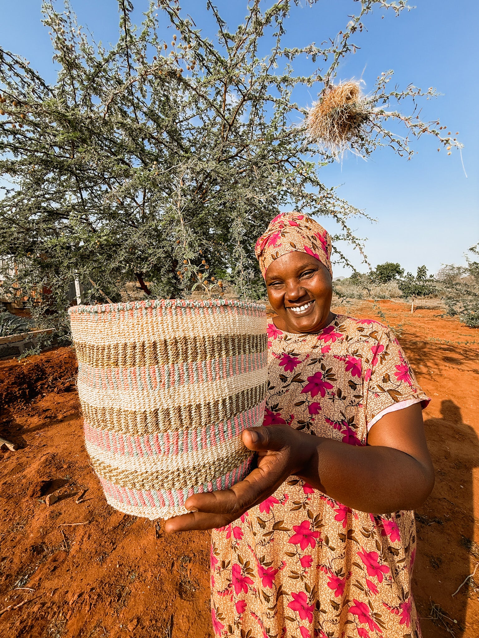 This fine weave sisal basket is a work of art, handmade in Taita-Taveta, a rural county in Kenya, where Zawadisha calls home. The women who weave these baskets are not only supported by being paid a fair wage for their weaving, but they are also supported by our microlending program.