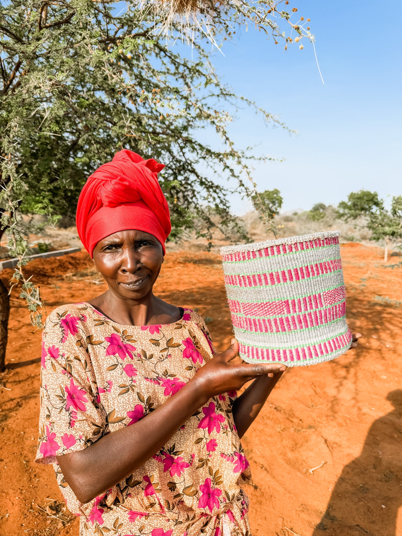 This thick weave sisal basket is a work of art, handmade in Taita-Taveta, a rural county in Kenya, where Zawadisha calls home. The women who weave these baskets are not only supported by being paid a fair wage for their weaving, but they are also supported by our microlending program.