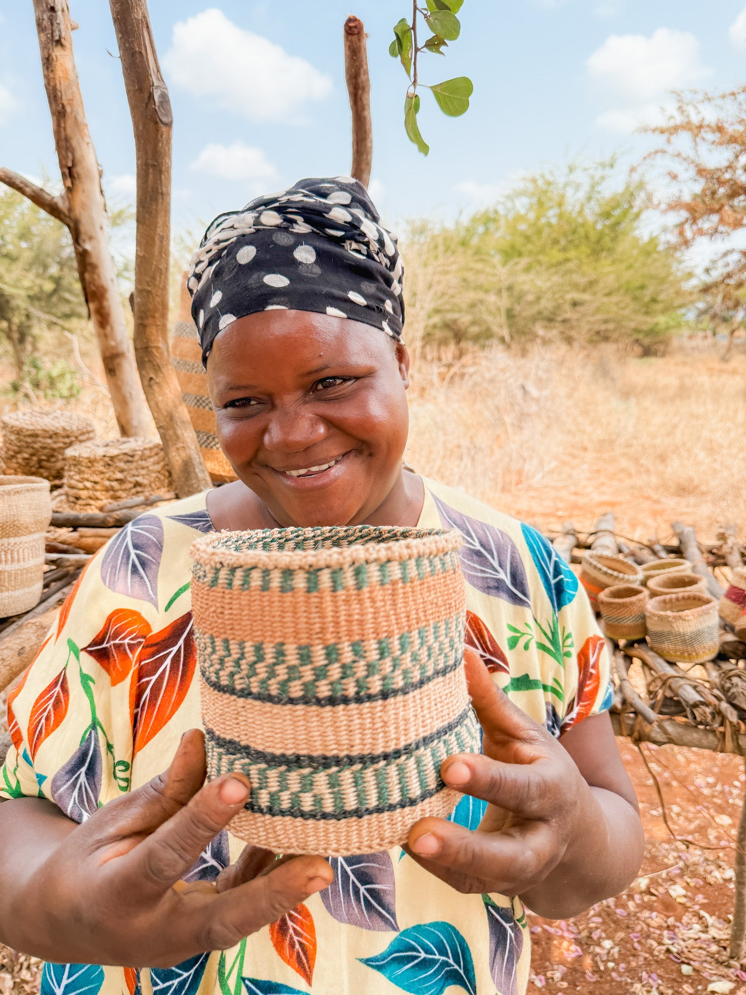 This thick weave sisal basket is a work of art, handmade in Taita-Taveta, a rural county in Kenya, where Zawadisha calls home. The women who weave these baskets are not only supported by being paid a fair wage for their weaving, but they are also supported by our microlending program.
