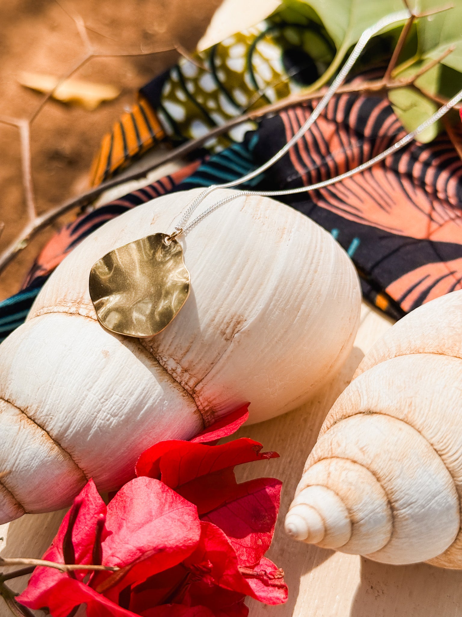 A Bird Named Frank captures the magical beauty of South Africa in this mixed-metal rippled leaf and silver necklace, handmade in Cape Town. Each necklace features a delicate brass half-moon shape on a silver chain.